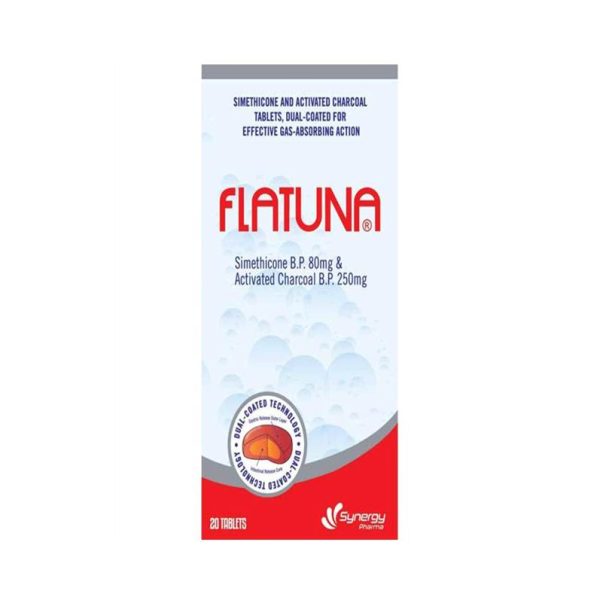 Flatuna Simethicone B.P 80Mg & Activated Charcoal B.P 250Mg 20 Tablets